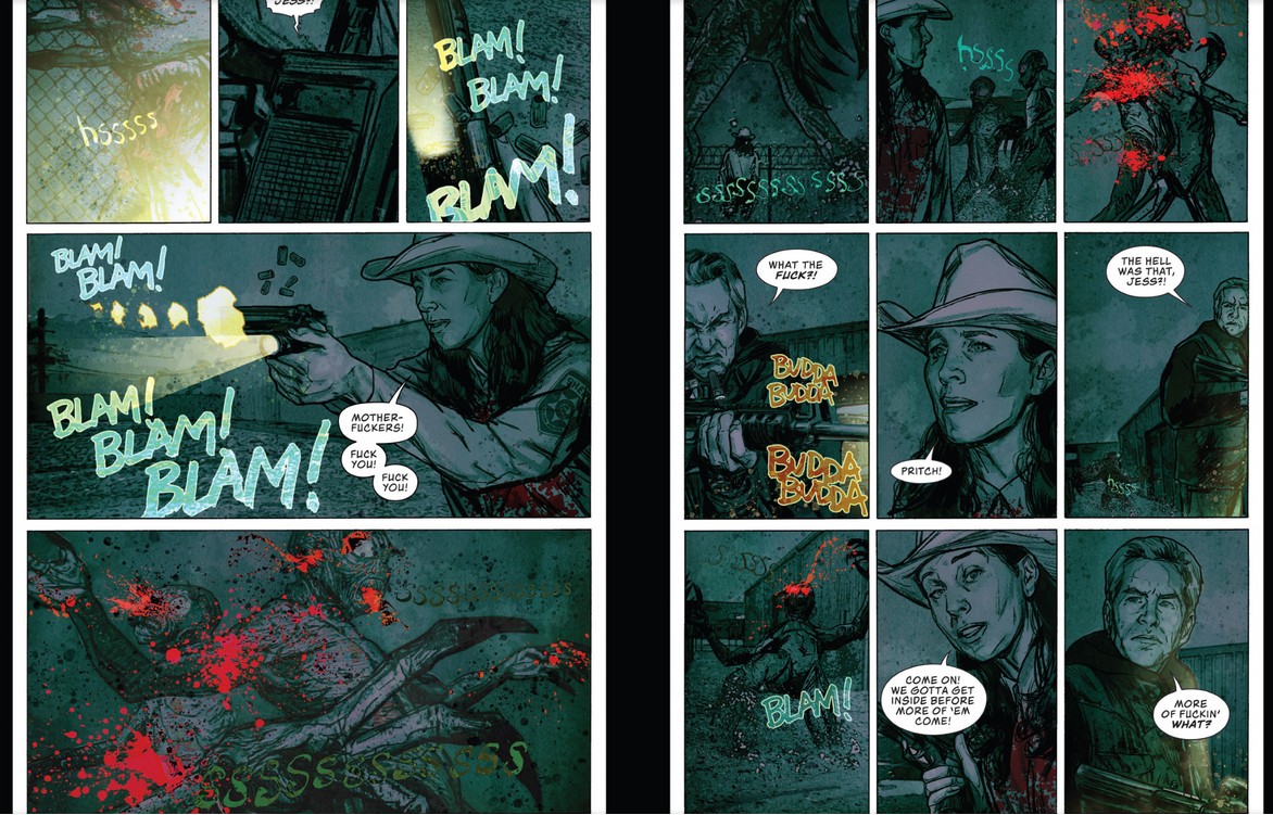 コミック作品としては、結構昔2011年に『スパルタカス』のコミカライズらしい『Spartacus – Blood & Sand』というのがDevil’s Dueから出ている。…んだが、本人のAmazonページには載ってない。まあ色々悪評も高いDevil’s Dueだし、作品的にも不満だったのかも?その後『バフィー・ザ・ヴァンパイア・スレイヤー』のDark Horse Comicsからのコミカライズも手掛けているらしいんだが、なんかDark Horseも版権なくなったんだか販売してないんでよくわからない…。そして2021-22年のマーベル『Wastelanders』があって、2024年のこの『Beneath』となる。